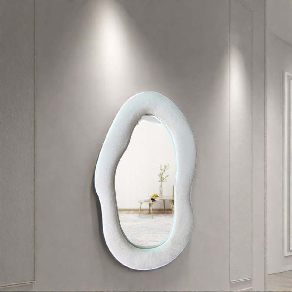 Miroir sur pied moderne et luxueux, contemporain, ondulé, avec cadre en alliage d'aluminium - Fixation murale adhésive, décoration intérieure, couleur personnalisable