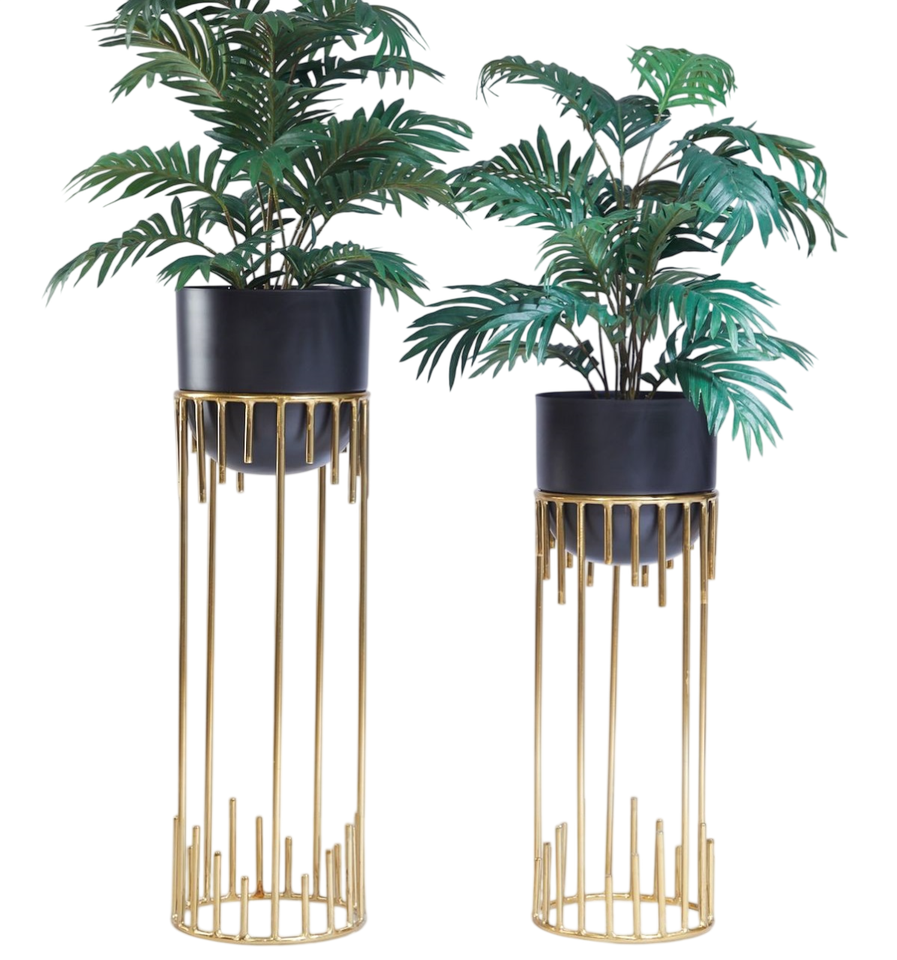 Modern Luxury Copper Planter with Black Metal Stand Set Ideal for Living Room Interior Garden Hotel Lobby Decoration