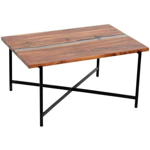 Table basse moderne de la collection River au design luxueux Tables centrales en bois d'acacia Pieds en métal 36x24x18 Meubles de maison pour le salon