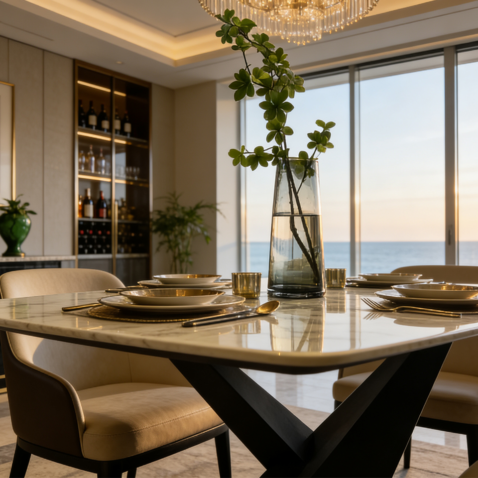 Ensemble de table à manger moderne de luxe avec plateau en marbre et pieds en métal pour la salle à manger à domicile, hôtel, restaurant, meubles