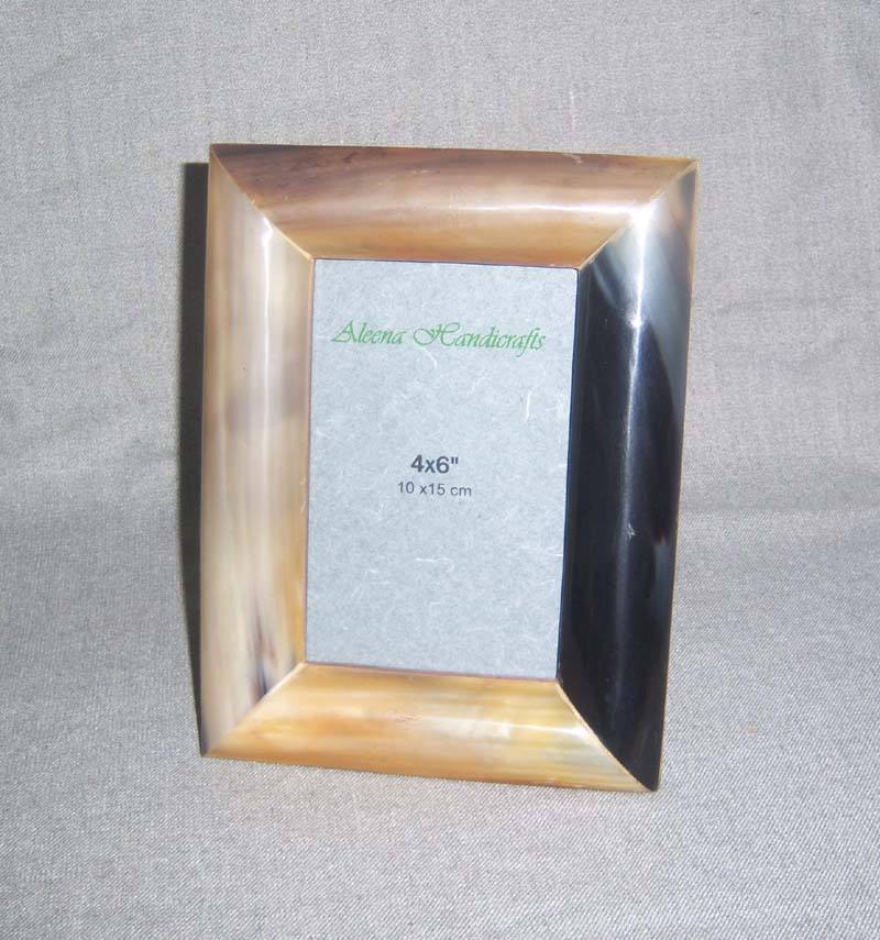 Cadre photo moderne de luxe écologique en incrustation d'os sculpté à la main pour la décoration de table avec des bandes blanches, fait à la main en Inde