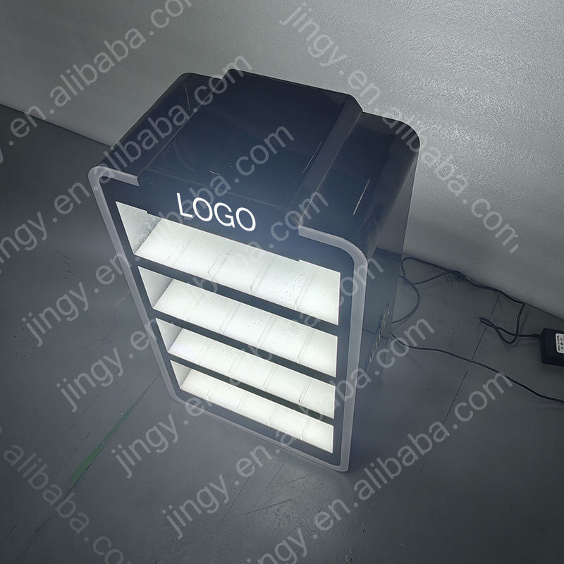 Présentoir de sol moderne de luxe, écologique, recyclable, en acrylique LED, personnalisé, léger et résistant à l'eau pour sachets de nicotine et produits électroniques