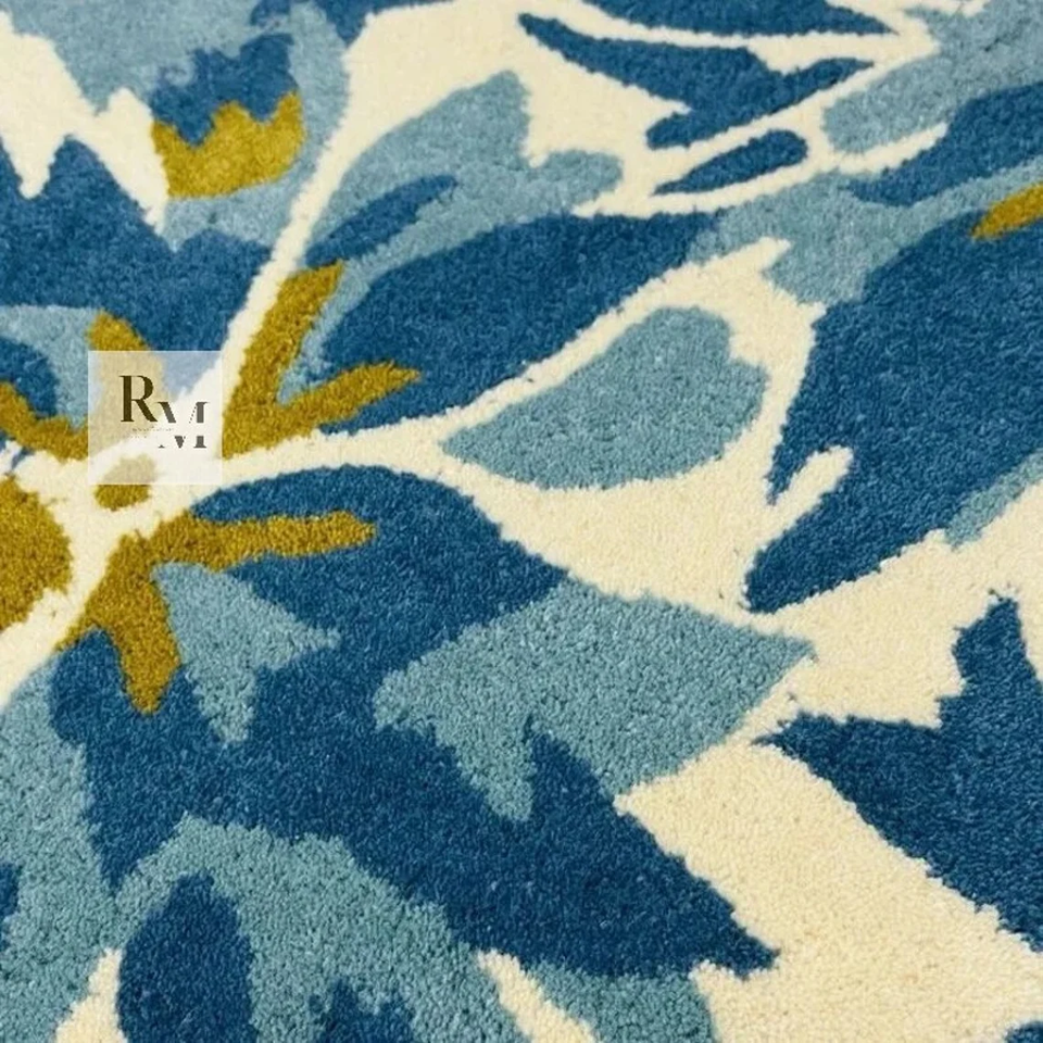 Tapis d'intérieur en laine à poils longs, design géométrique floral moderne et luxueux, 100% laine fine, pour la maison, la chambre à coucher, le salon, le bureau