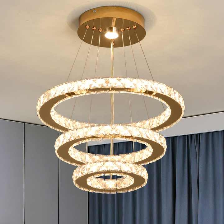 Lustre LED Géométrique Moderne de Luxe pour Salon, Suspension 3 Anneaux