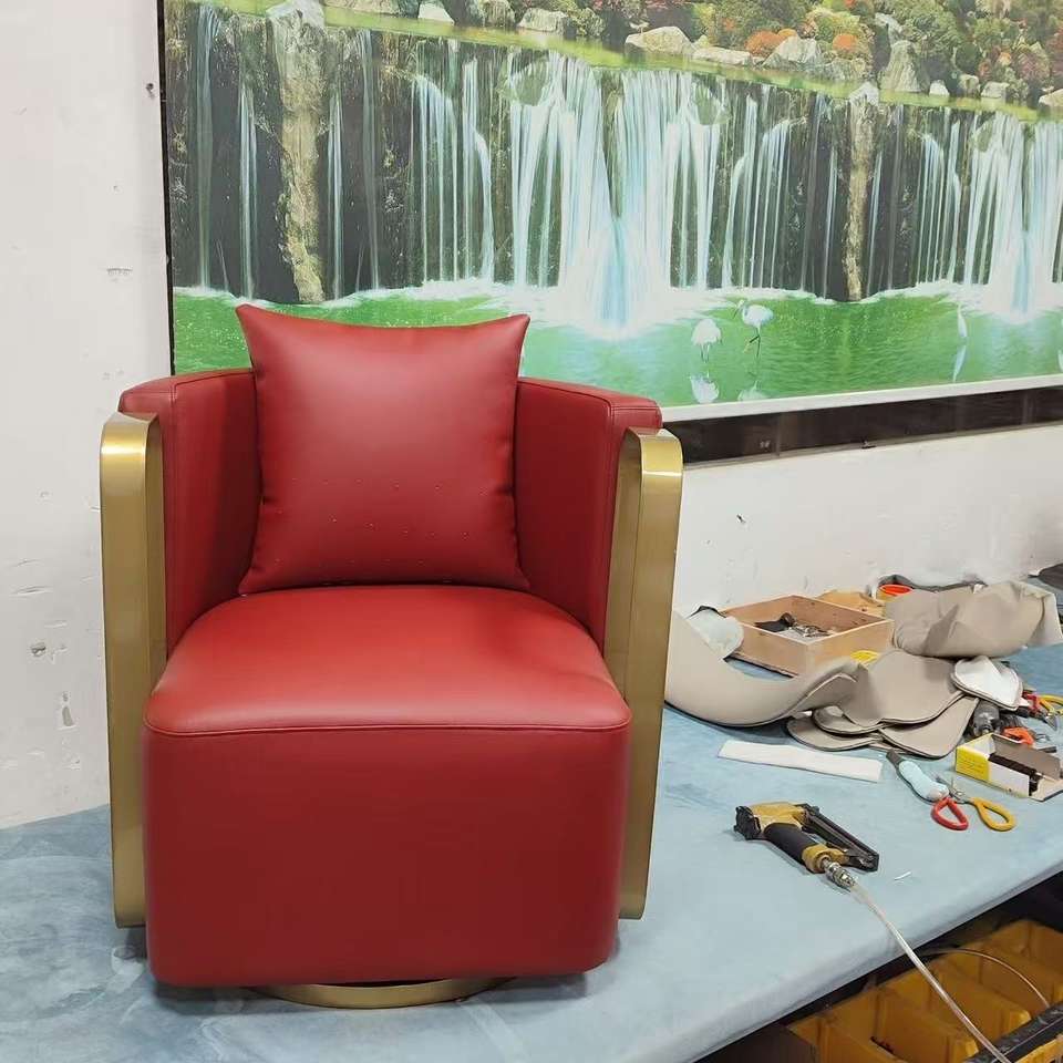Fauteuil pivotant de style détente en velours avec cadre en métal doré de luxe moderne pour le salon