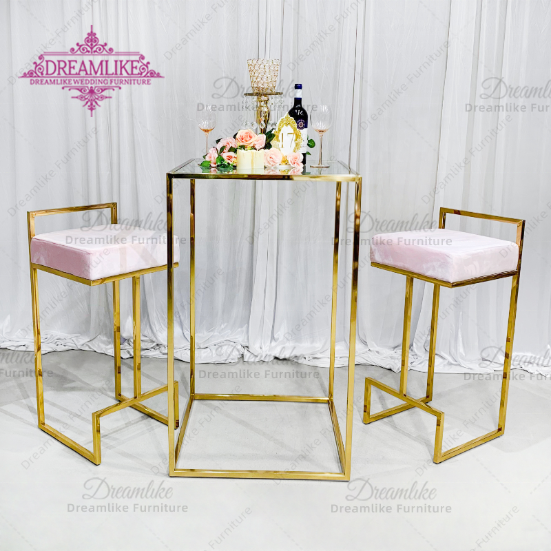 Tables de bar à cocktails modernes de luxe en acier inoxydable doré pour la maison, le restaurant ou l'hôtel pour la location de banquets et d'événements