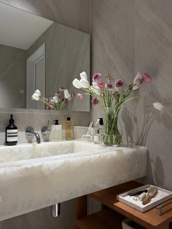 Table de vanité moderne de luxe en jade-agat, dalles polies translucides, lavabos de salle de bain pour tables d'île tendances, villas, bureau de maquillage