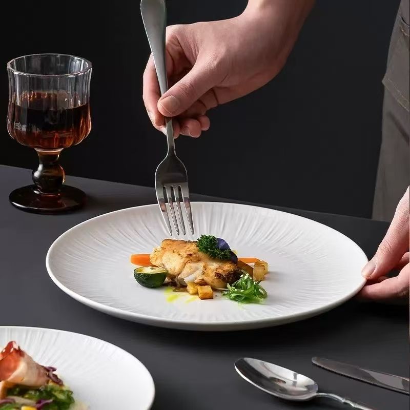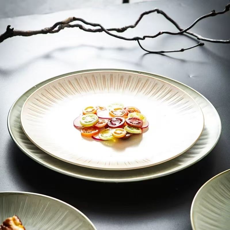 Assiette creuse en céramique japonaise de luxe moderne Assiette à spaghetti pour hôtel, dîner, collation Plat en poterie pour les fêtes