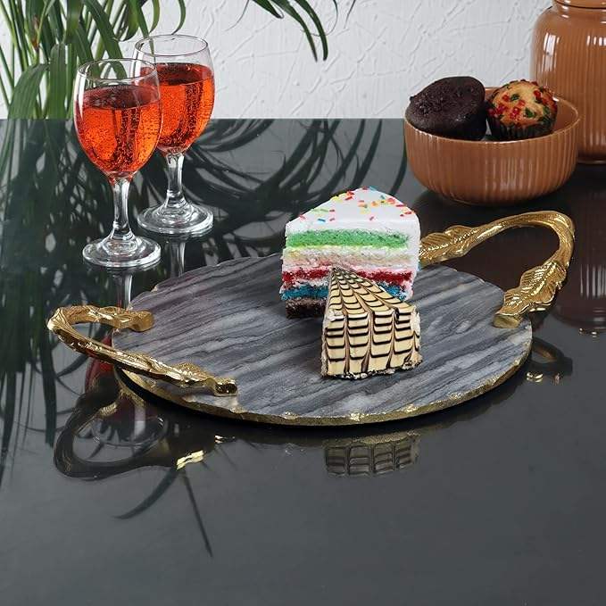 Premium Quality Luxury Marble Tray With Handle for Living Room Coffee Table Hotel Fruit and Snack Display