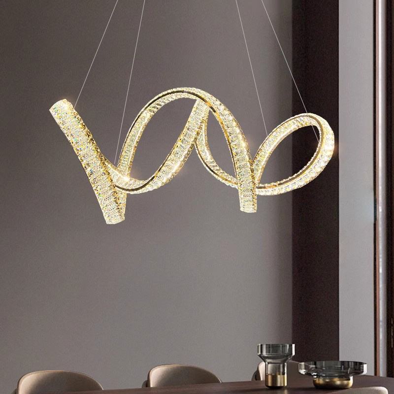 Lustre LED de luxe moderne personnalisé à double hélice suspension pour villa, hôtel, restaurant, chambre, cristal décoratif