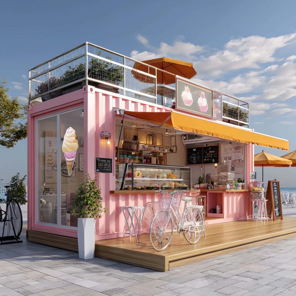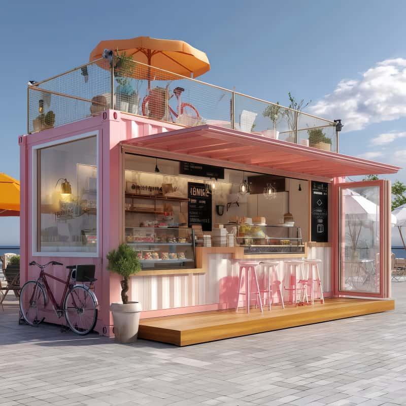 Maison fabriquée en acier, Boutique, Toilettes, CAFÉ SHOP, Parking, Fête, Pod réunionApplication