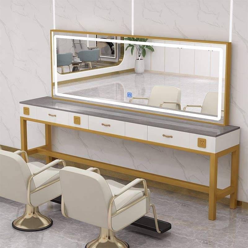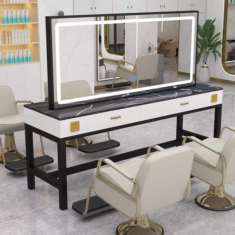 Coiffeuse moderne de luxe en marbre miroir de coiffure simple face éclairage à la maison coloration des cheveux permanente beauté/salon de coiffure