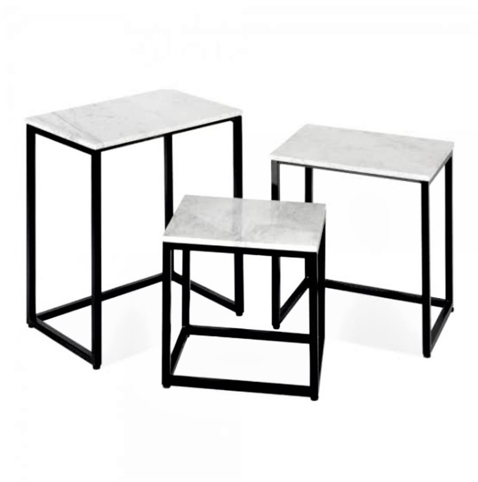 Table basse moderne de luxe avec dessus en marbre Table basse nordique en fer forgé avec extrémité latérale dorée pour meubles de salon