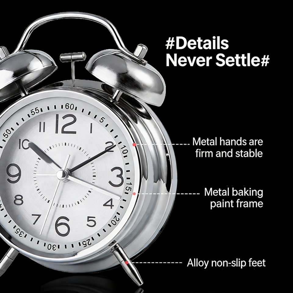 Réveil analogique à quartz moderne de luxe en métal, créatif, petit, pour étudiants, table, cuisine, bureau, artefact de réveil