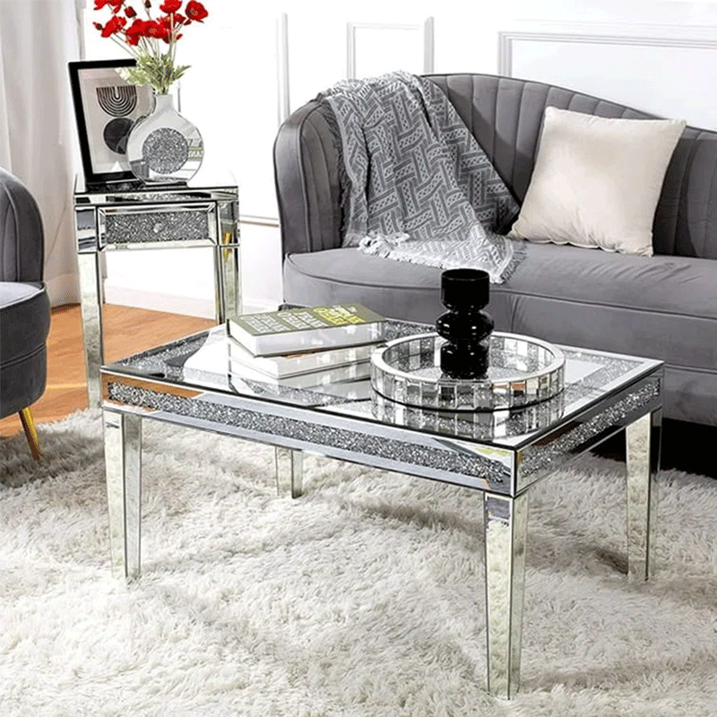 Table basse moderne de luxe en miroir, meubles en diamant écrasé, table miroir pour salon, nouveau design, table à thé