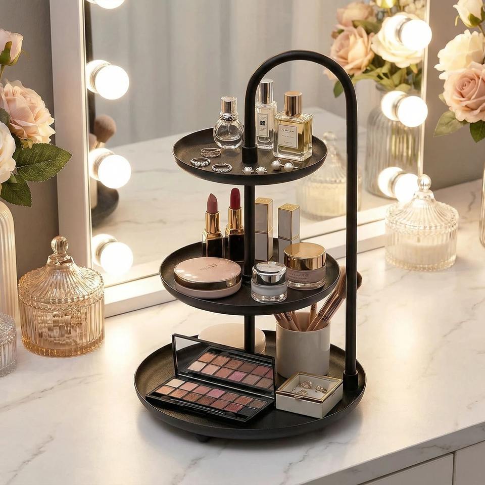Plateau de rangement multi-niveaux en acier inoxydable de luxe moderne avec poignée incurvée pour la salle de bain, plateau de service à 3 niveaux pour vaisselle et boissons