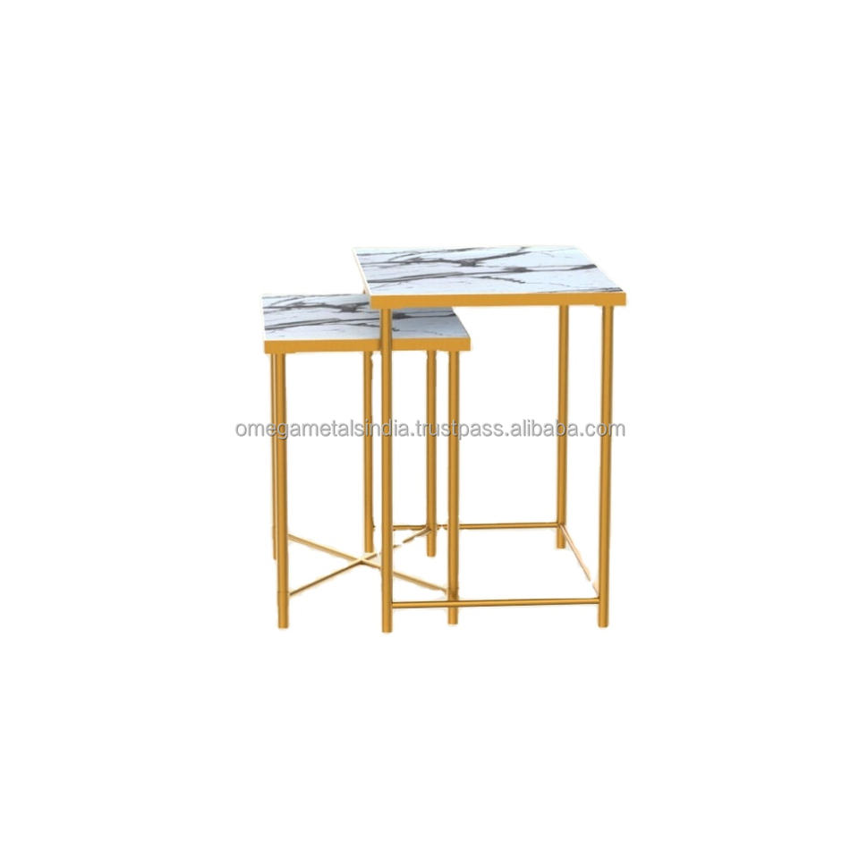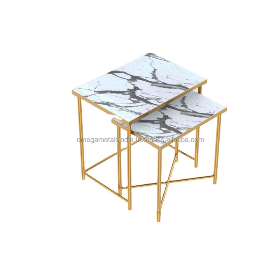 Ensemble de 3 tables gigognes de luxe modernes avec dessus en marbre et meubles de maison en métal en vente pour le salon