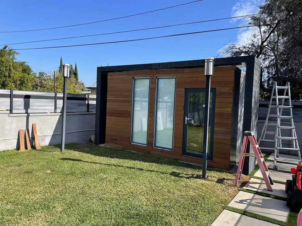 Bâtiment préfabriqué de luxe moderne pour jardin, salle de sport extérieure, studio, bureau, abri ou maison