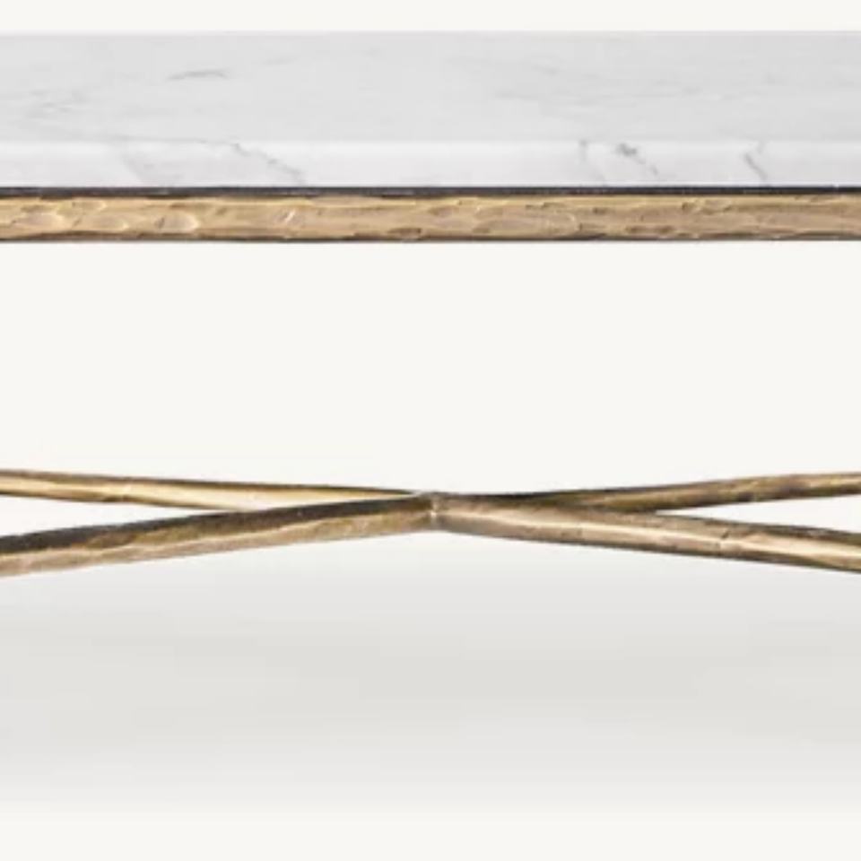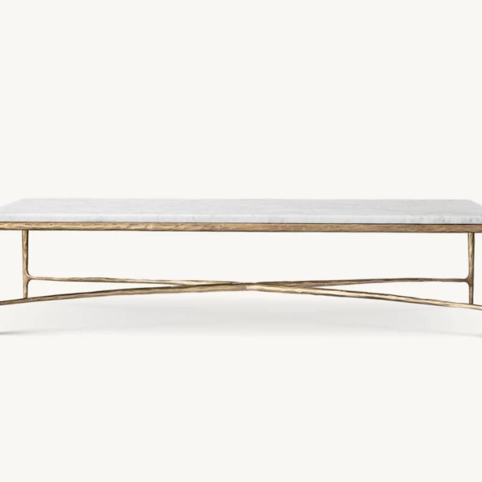 Table basse rectangulaire de luxe moderne avec plateau en marbre et design en métal massif forgé pour le salon, meuble décoratif