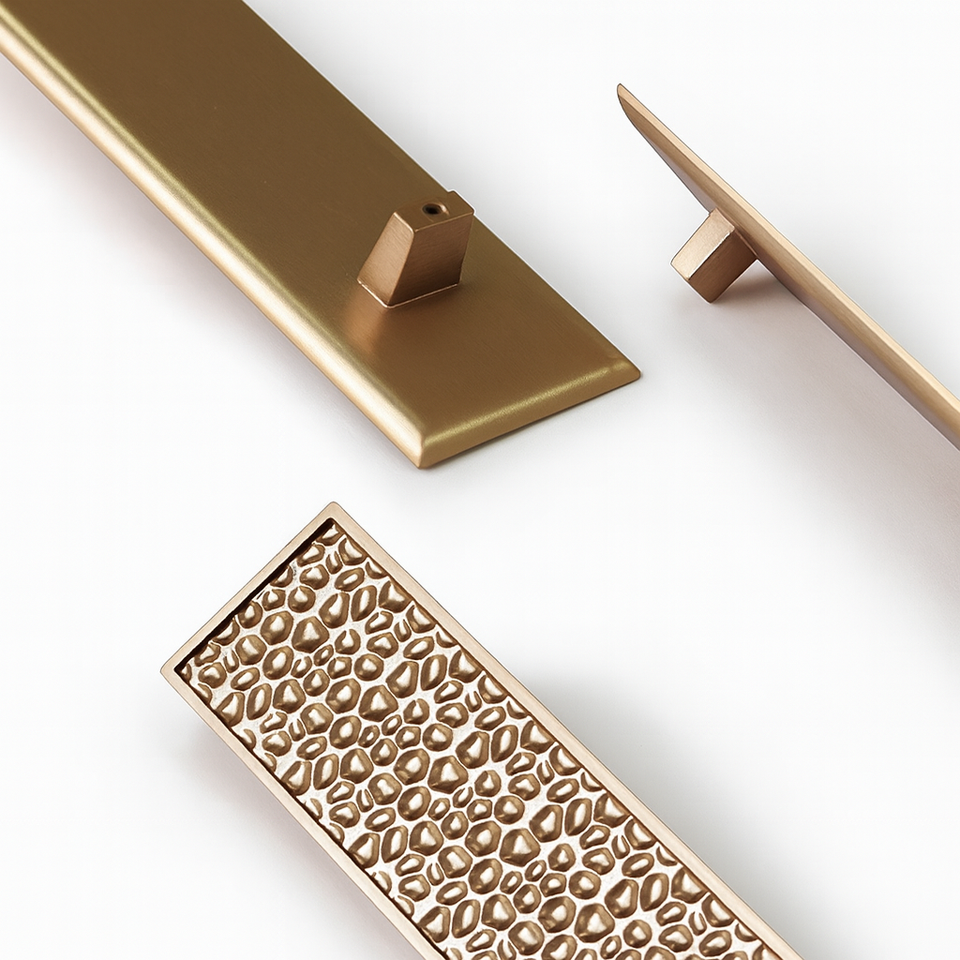 Poignée de meuble rectangulaire moderne de luxe en alliage de zinc, surface texturée, durable pour cuisine, salle à manger, salle de bain, armoire, meubles