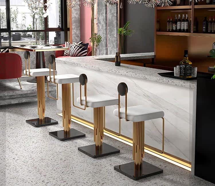 Chaise de bar haute en acier inoxydable et cuir blanc, style moderne et luxueux, dossier simple, meubles de cuisine