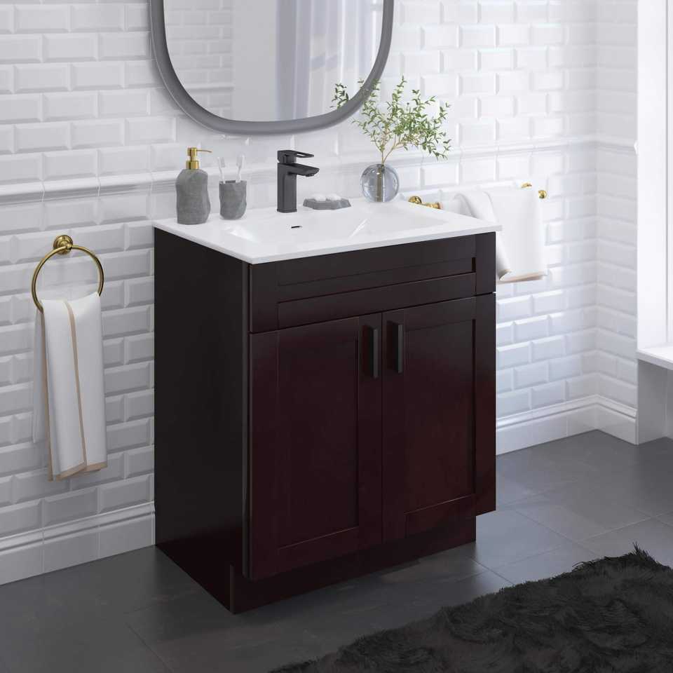 Modern Luxury Single Sink Bathroom Vanity Cabinets MDF Wood with Countertop for Schools Apartments Hotels Villas Hospitals