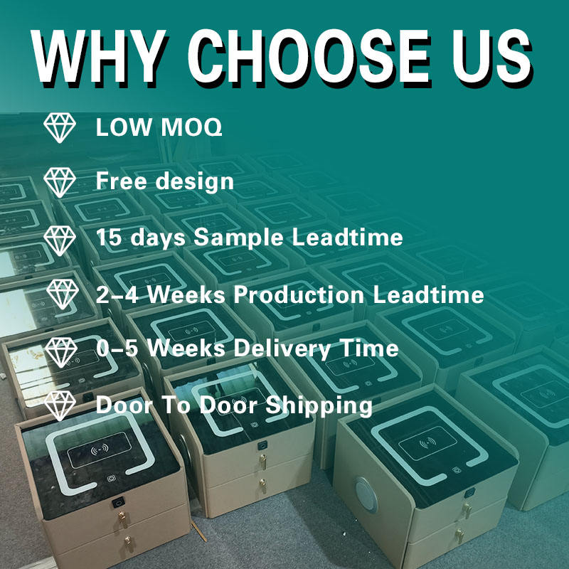 Vente en gros de table de chevet intelligente de luxe moderne avec empreinte digitale et serrure USB support de chevet en bois gris blanc pour chambre à coucher