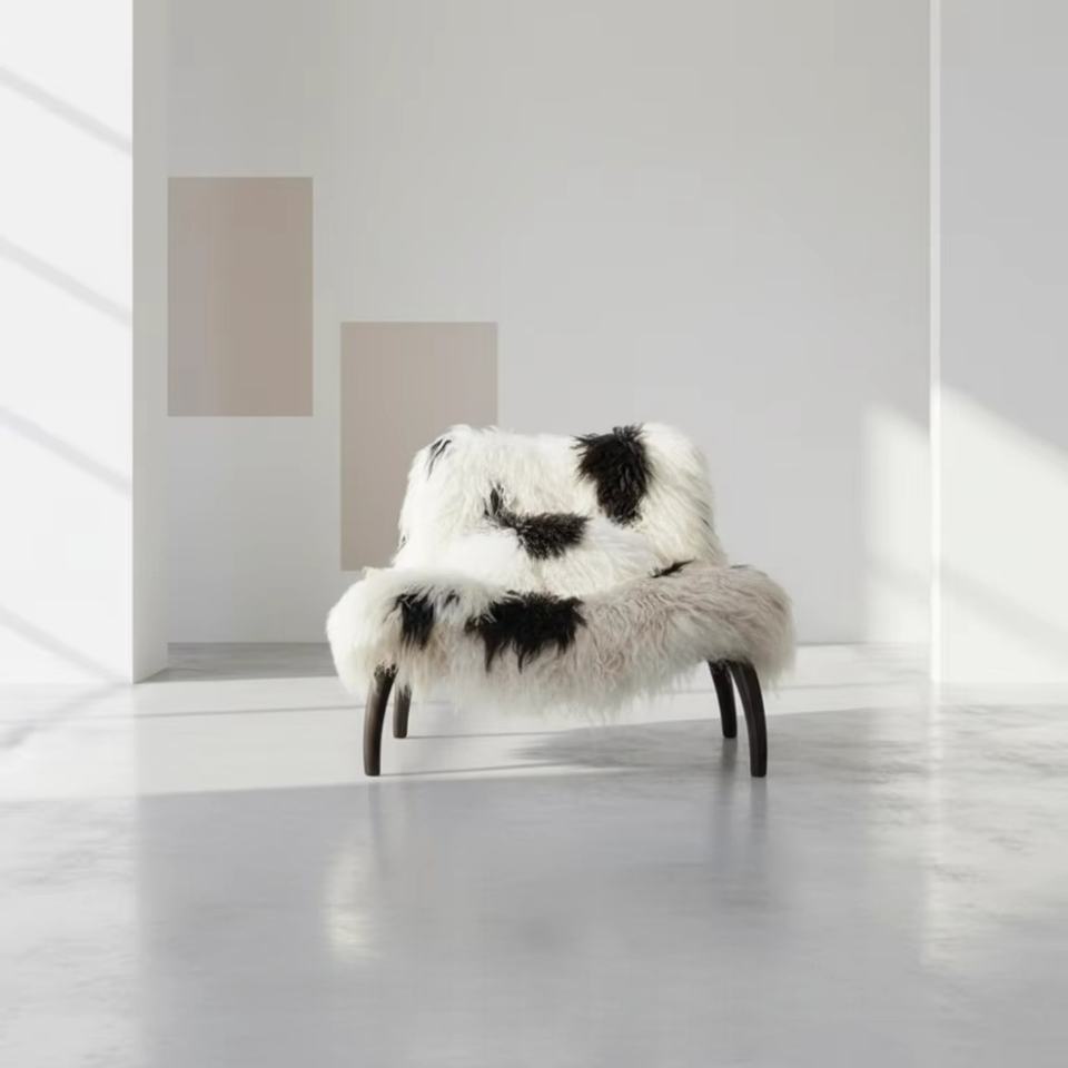 Fauteuil d'appoint moderne de luxe en laine tachetée, canapé individuel incurvé pour salon de yacht privé et décoration de salon de chalet de ski de luxe