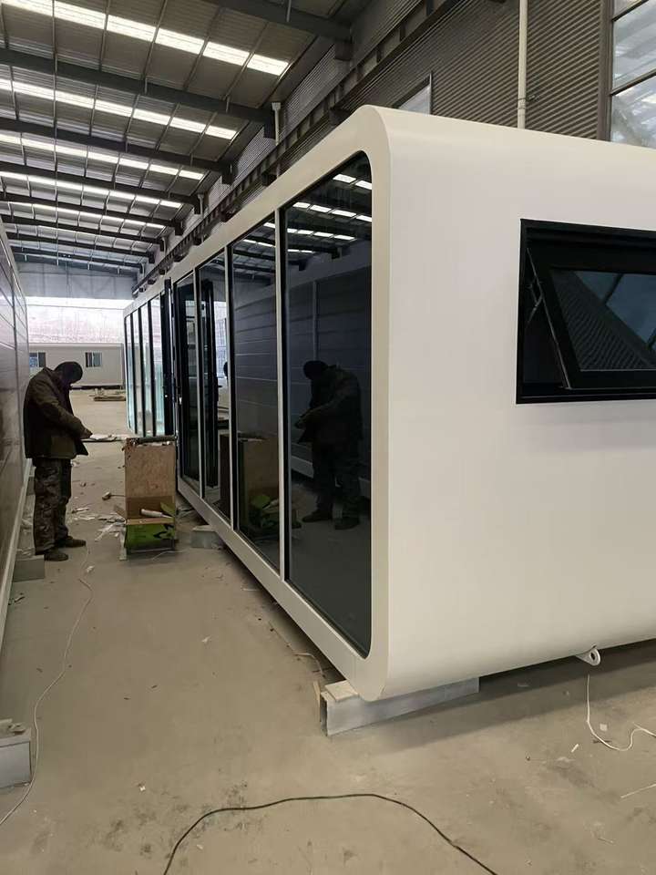 Micro-container portable de luxe moderne en structure acier, étanche, préfabriqué, type vaisseau spatial, avec mobilier