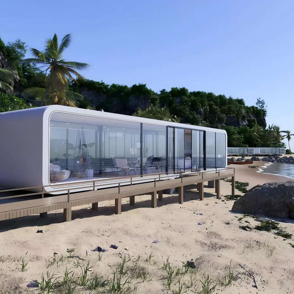 Villa en acier préfabriquée portable de luxe moderne, résistante aux intempéries et aux tremblements de terre, type cabane Apple, pour une vie de vacances