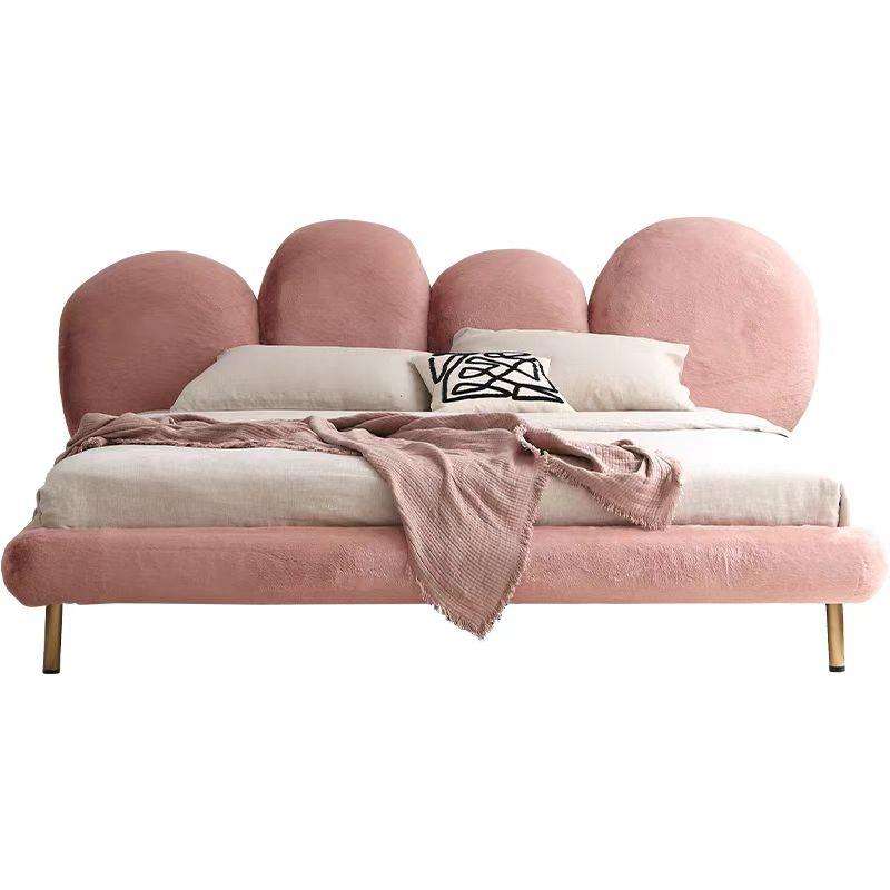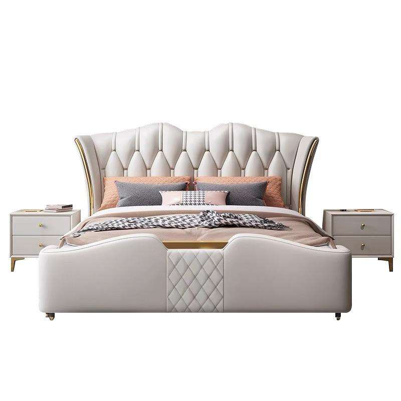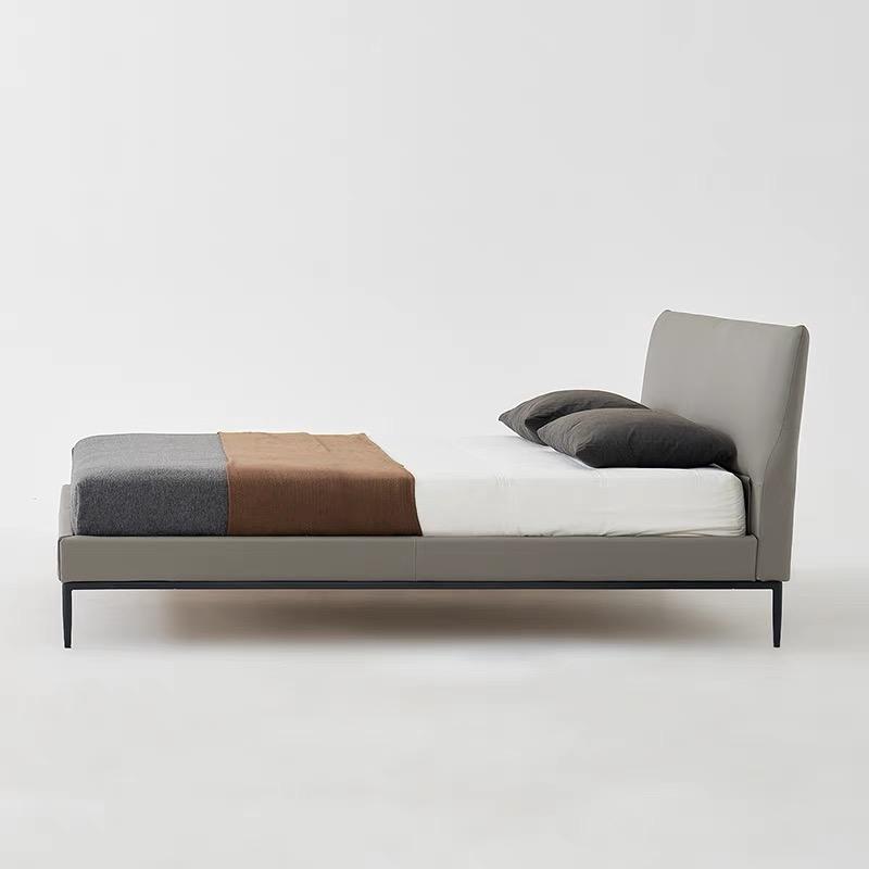 Lit superposé moderne de style mi-siècle en bois finition brun pin avec revêtement en cuir, taille Queen/King