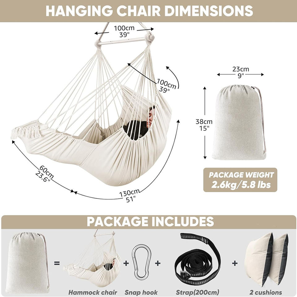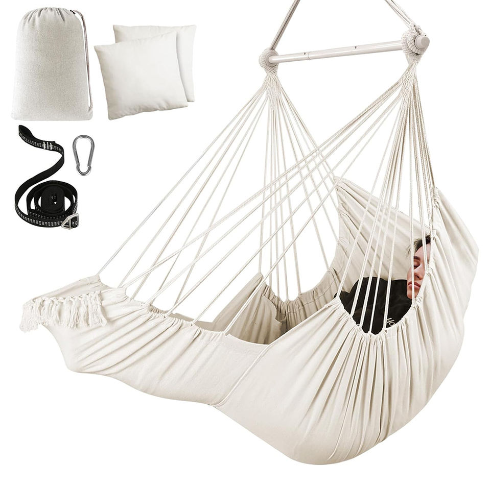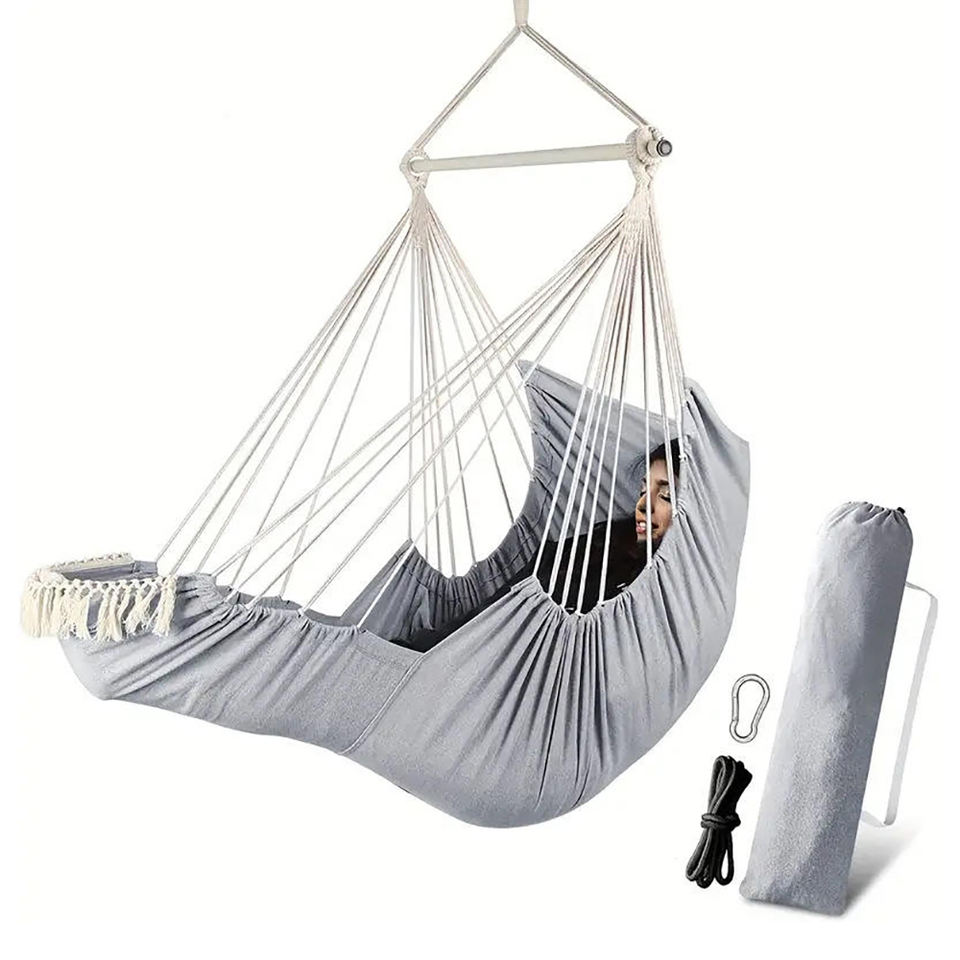 Chaise hamac en macramé moderne pour l'extérieur, jardin, chambre, hôtel, parc, école avec balançoire suspendue et repose-pieds