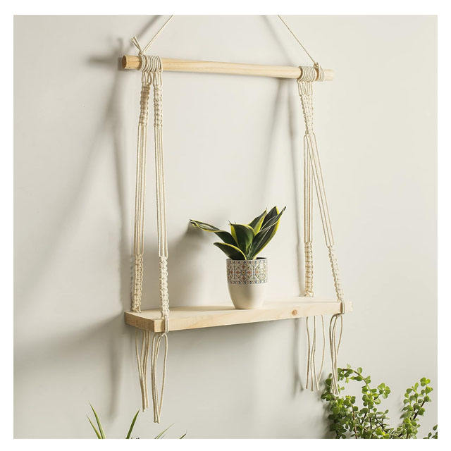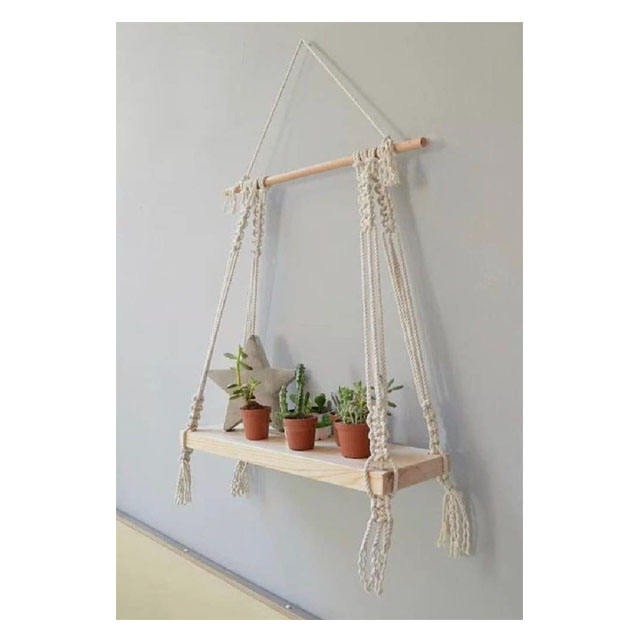 Etagère flottante moderne en bois de pin macramé décoration d'anniversaire de mariage pour le salon tenture murale en bois