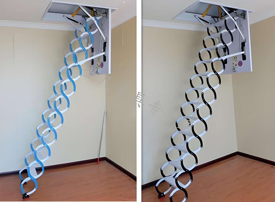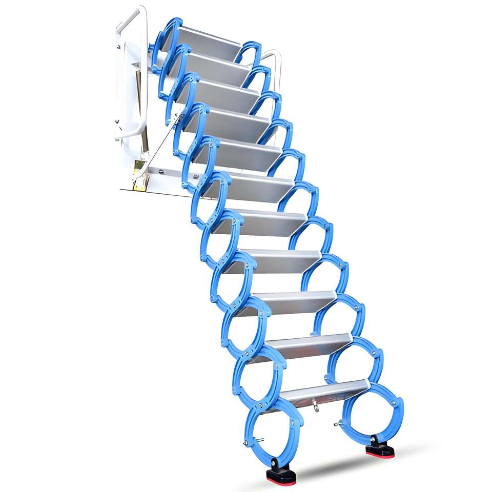 Escalier de grenier télescopique rétractable manuel moderne en acier, mural, pour intérieur et extérieur, idéal pour villa