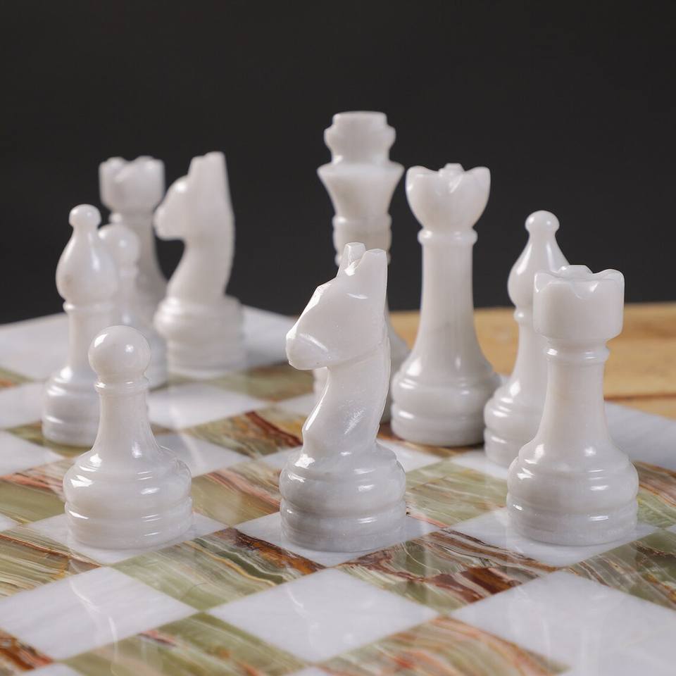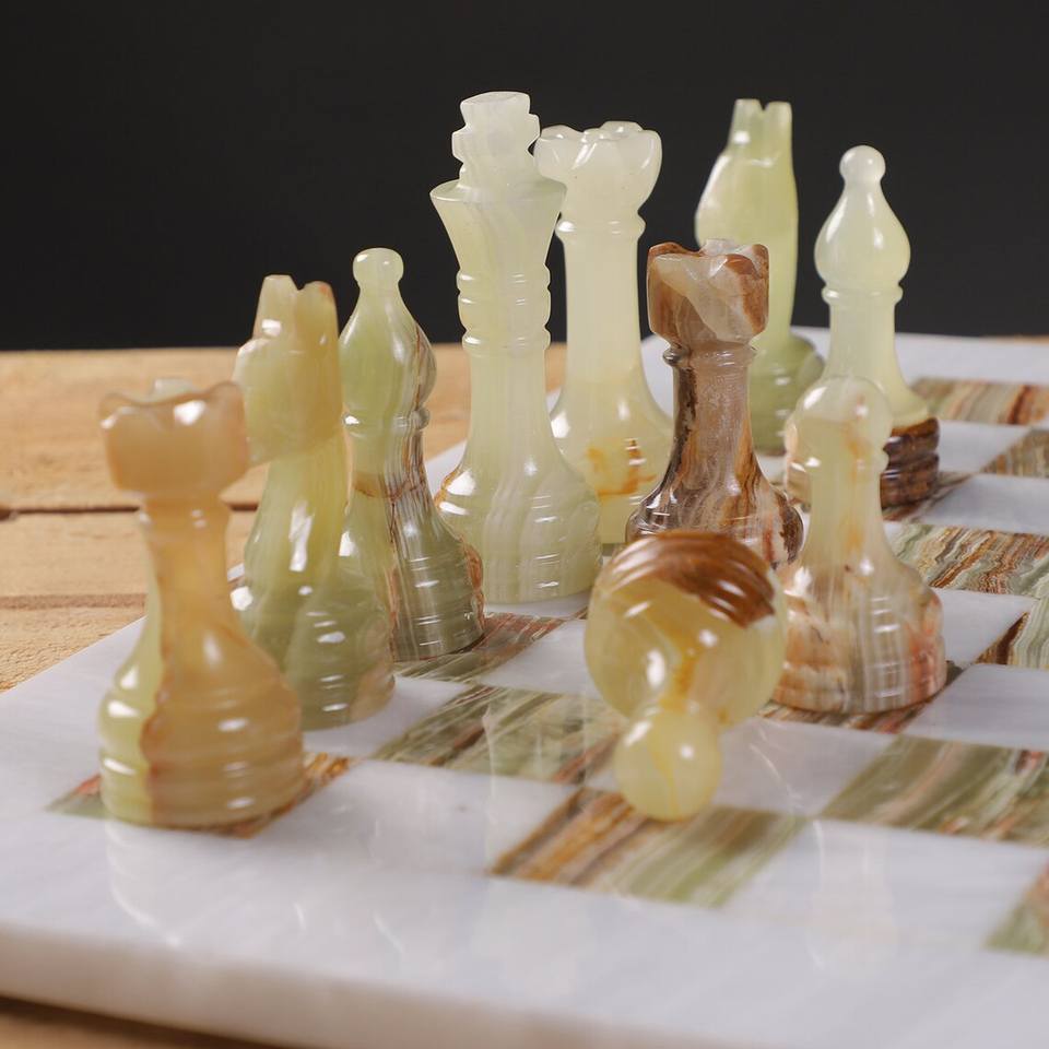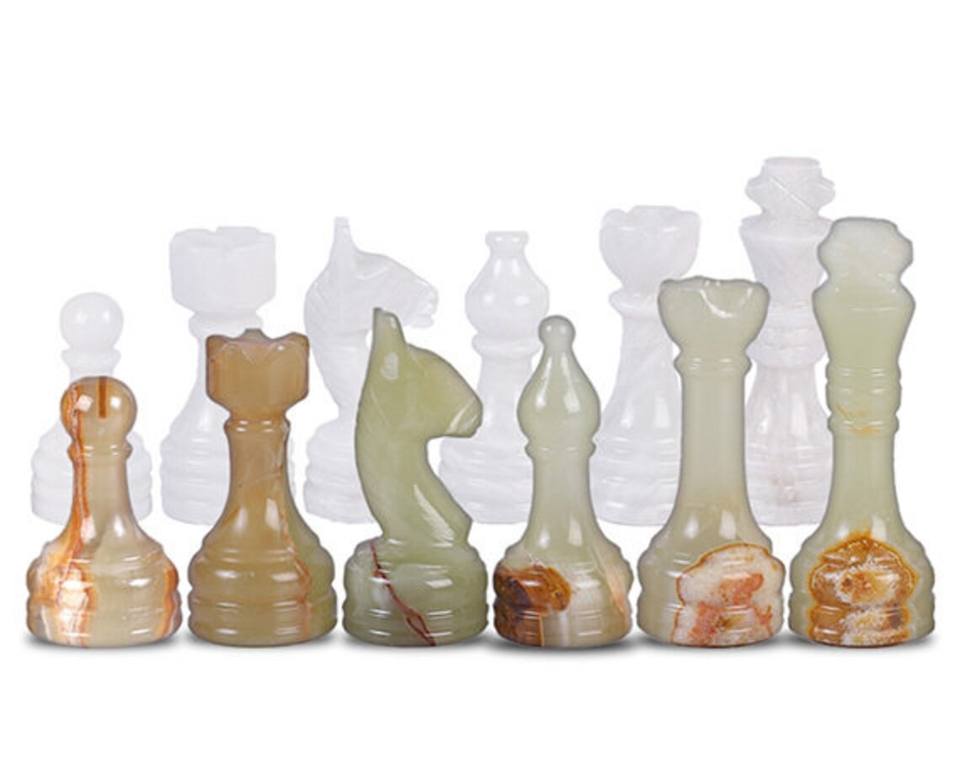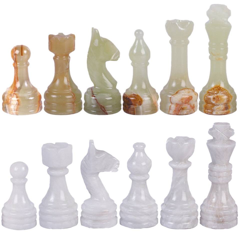 Jeu d'échecs en marbre moderne pièces seulement, jeu d'échecs en onyx blanc et vert figurines faites à la main, échecs en pierre de marbre pour l'intérieur