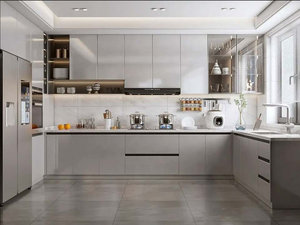 Comptoir de cuisine moderne en marbre, armoire en bois laqué pliable avec tiroirs à fermeture douce