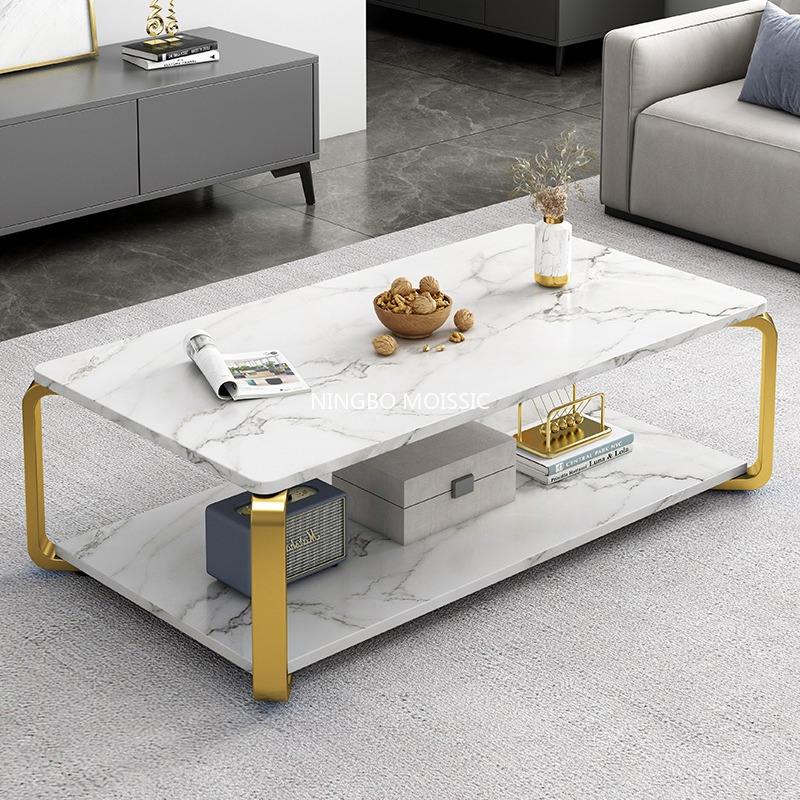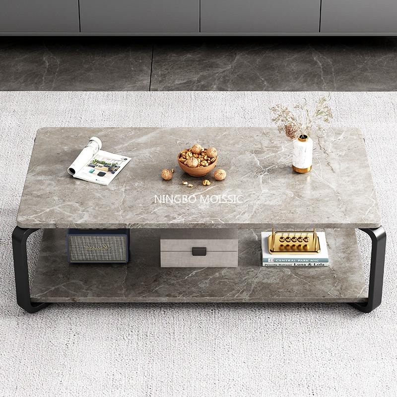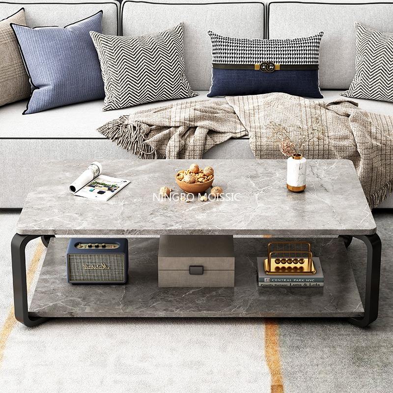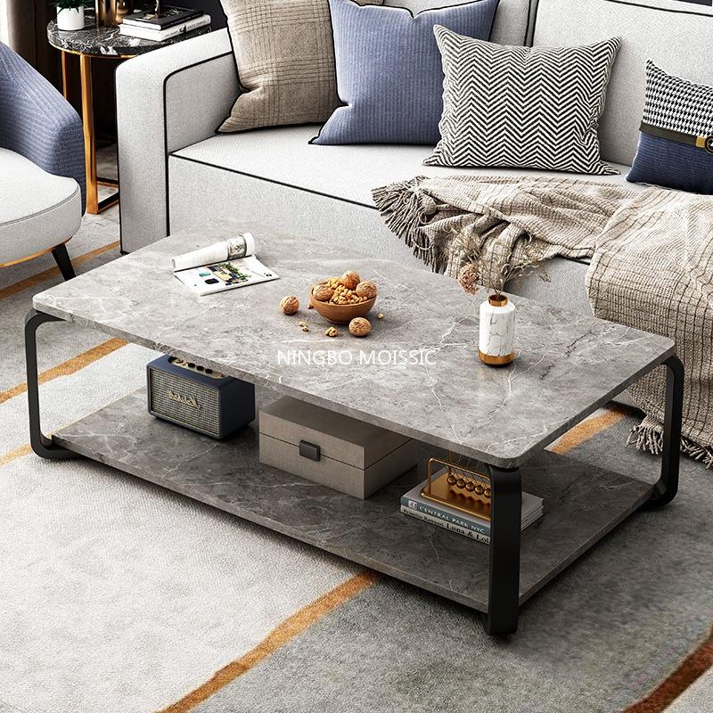 Modern Marble Look Dining Table Grey with Storage Shelf 2-Tier European Design Metal Legs for Hotel and Home Use