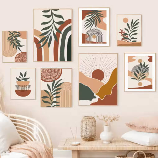Décoration intérieure moderne : toile d'art avec motif de plantes
