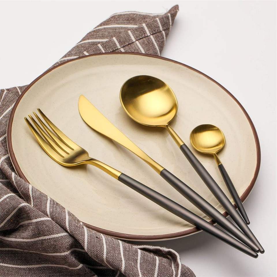 Ensemble de couverts modernes en acier inoxydable 18/10 noir mat et or, vaisselle de luxe pour restaurant, cuisine, dîner, revêtement PVD