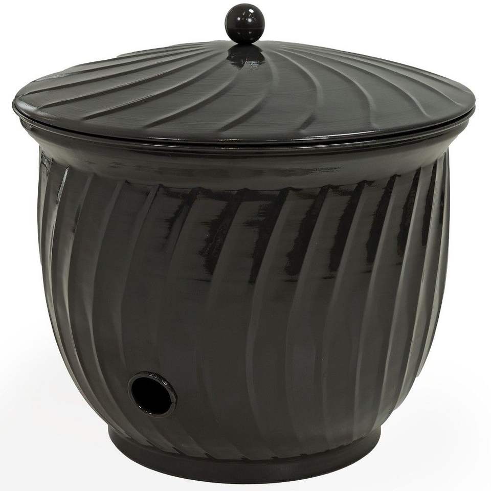 Bac de rangement moderne noir mat côtelé pour tuyau d'arrosage avec poteau central – Organisateur extérieur moderne