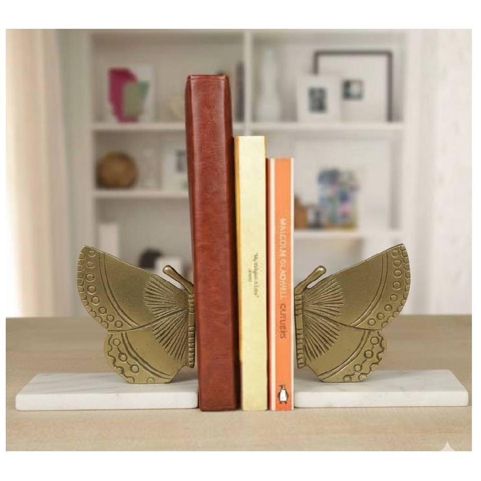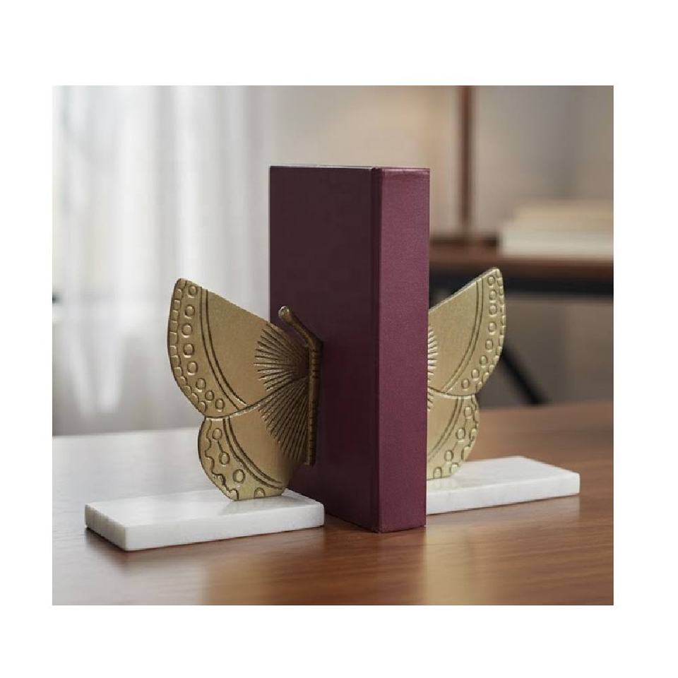 Serre-livres papillon modernes en aluminium poli doré, base antidérapante en feutre, robustes, 17 cm, pour livres, dossiers, magazines