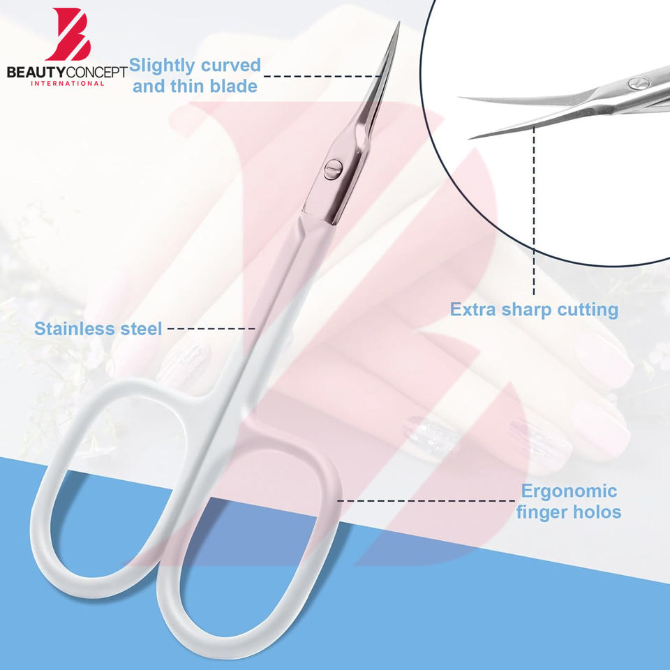 Ciseaux de beauté modernes à revêtement blanc mat, à pointe de précision, pour la coupe des cuticules, pour les kits de maquillage et de toilettage professionnels
