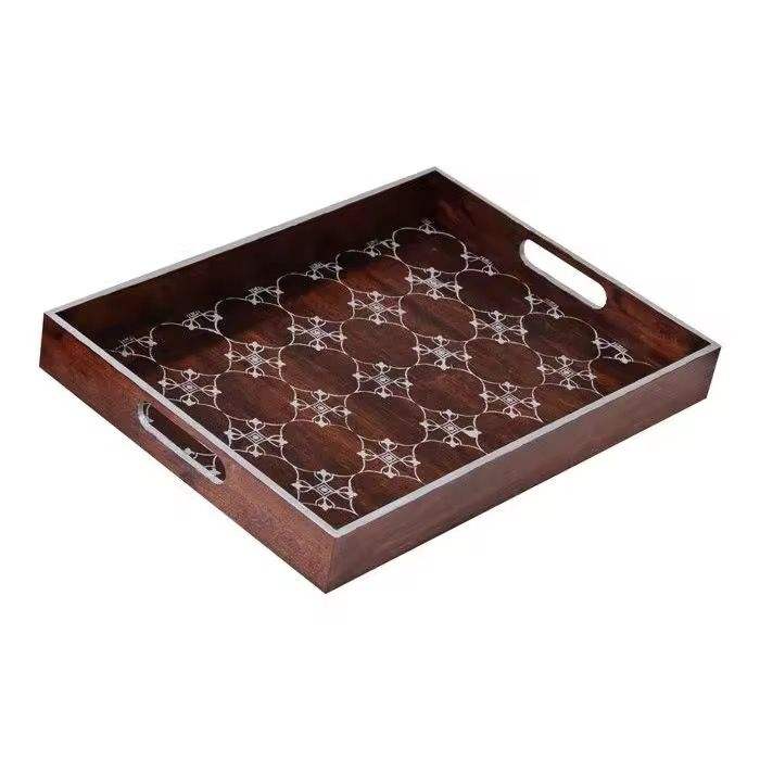 Plateau de service multifonctionnel en MDF peint à la main, de luxe moderne, avec poignées, pour décoration ottoman, écologique et de qualité alimentaire