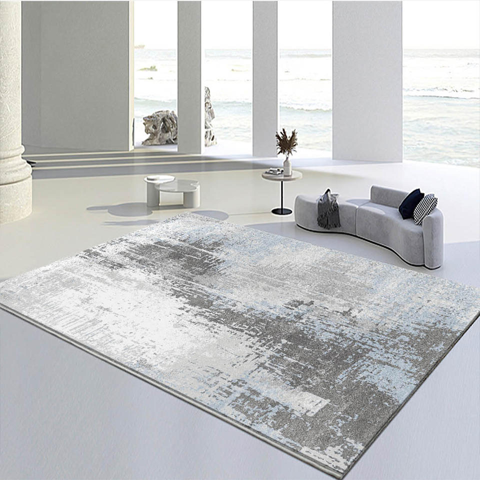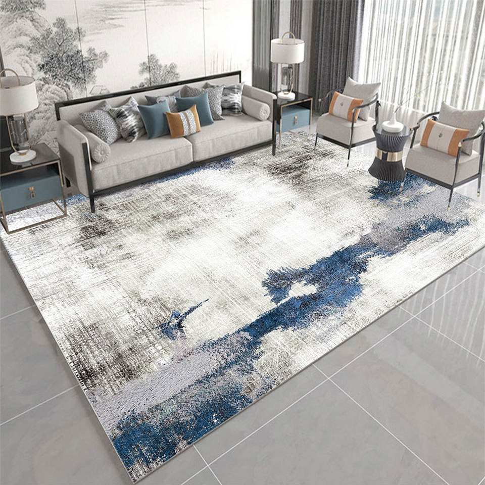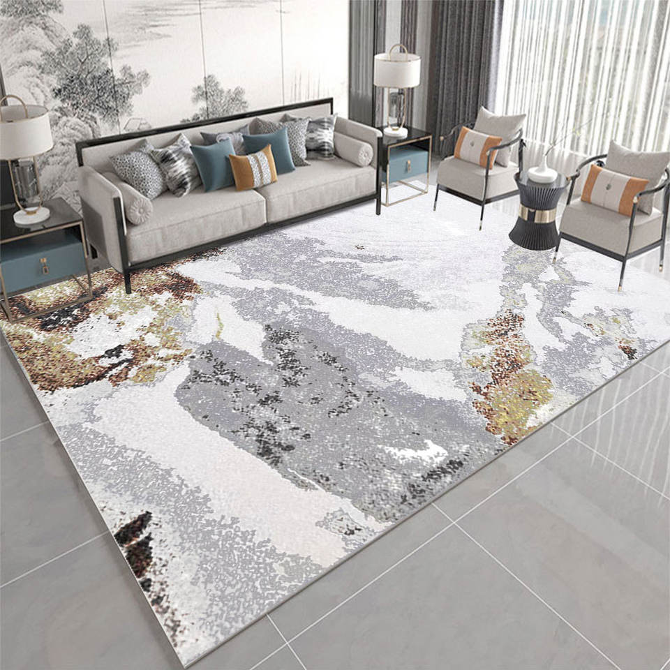 Tapis moderne à poils moyens, tapis de sol, tapis en velours imprimé géométrique doux, tapis d'art moderne de luxe avec impression dorée