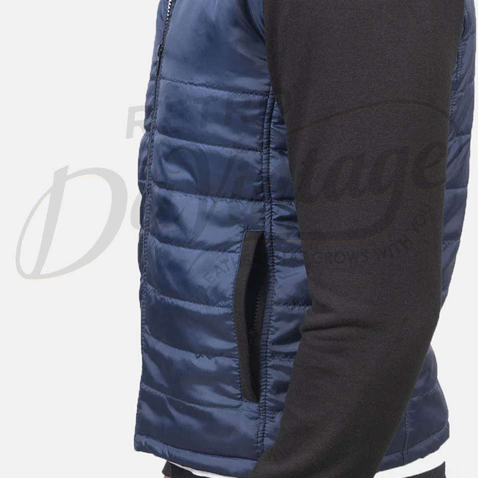 Veste d'hiver moderne pour homme à manches contrastées, bleu marine, matelassée, décontractée, chaude, coupe ajustée, zippée