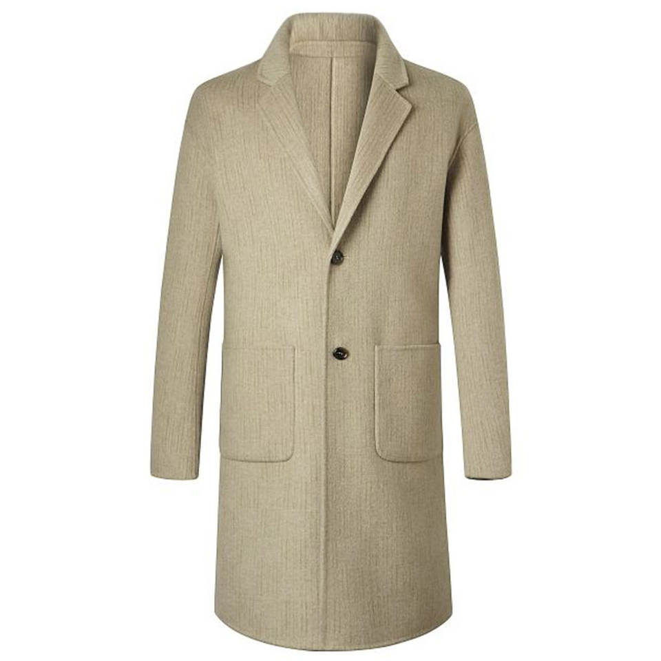 Manteau long en laine pour homme moderne, élégant et chaud, coupe ajustée, idéal pour l'hiver