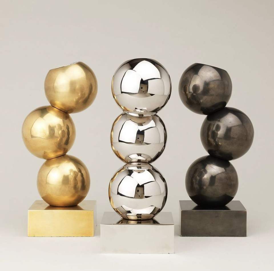 Artisanat métallique moderne pour la décoration intérieure de bureau, sculpture en acier inoxydable poli en forme de boule creuse
