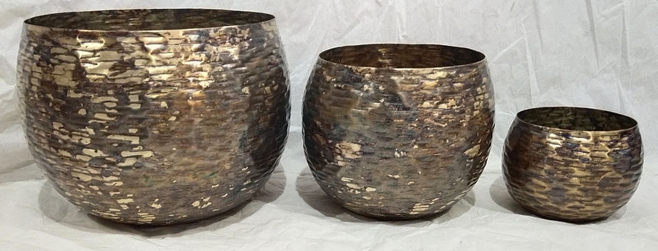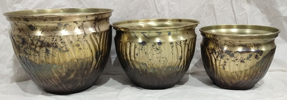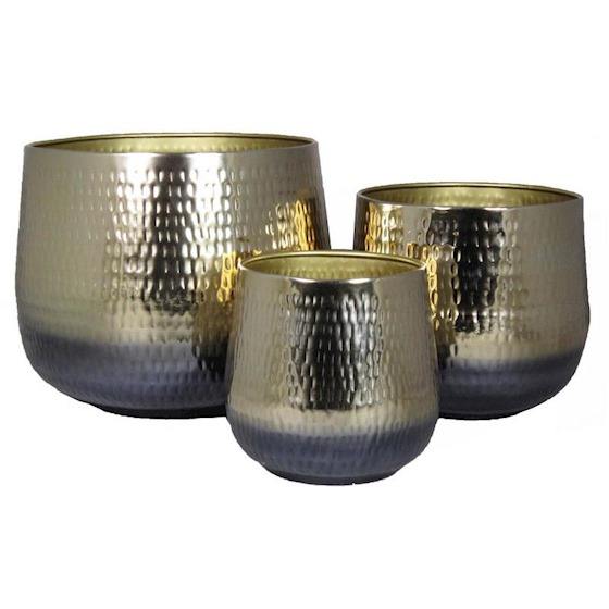Ensemble de 3 pots à fleurs en métal modernes, jardinières décoratives en fer, finition brillante, supports pour plantes d'intérieur et d'extérieur pour la maison, le jardin, le balcon