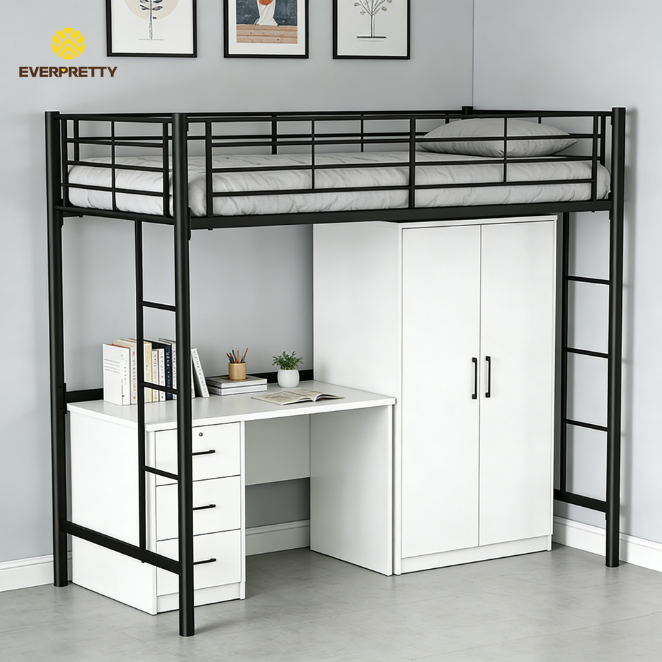 Nom du produit:Lit superposé avec cadre en métal, lit mezzanine pour dortoir d'enfants avec rangement