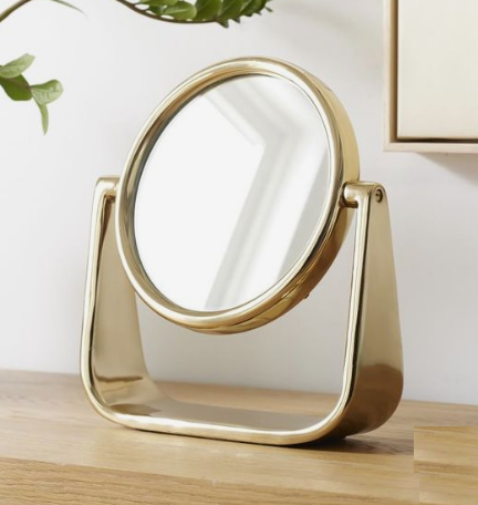 Miroir cosmétique de courtoisie rotatif à cadre doré avec cadre en métal moderne et support pour miroir de maquillage de comptoir de table